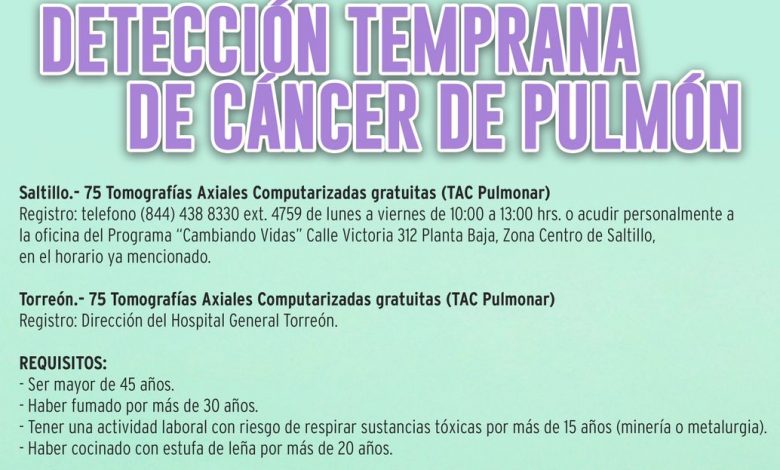 Invita Salud Coahuila a registro para detección temprana de cáncer de pulmón