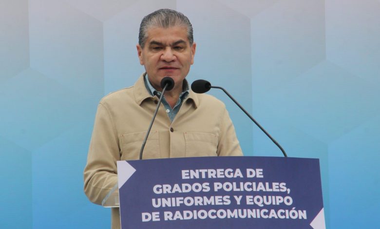 Durante la entrega de grados, uniformes y equipo al personal de la Comisión de Seguridad y Protección Ciudadana, ceremonia en la que acompañó al alcalde José María Fraustro Siller, el gobernador Miguel Ángel Riquelme Solís enfatizó que la fórmula en el tema de seguridad está en el trabajo en equipo y coordinado entre sociedad, Gobierno, Ejército Mexicano y Guardia Nacional.
