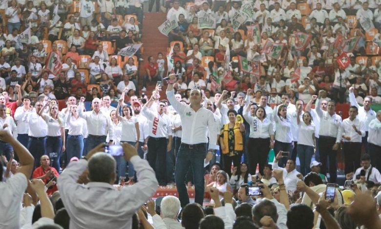 Durante el cierre de campaña estuvo acompañado por las candidatas y candidatos a diputados locales Guadalupe Oyervides, Blanca Lamas, Gerardo Aguado, Raúl Onofre, Olivia Martínez y Hugo Dávila.