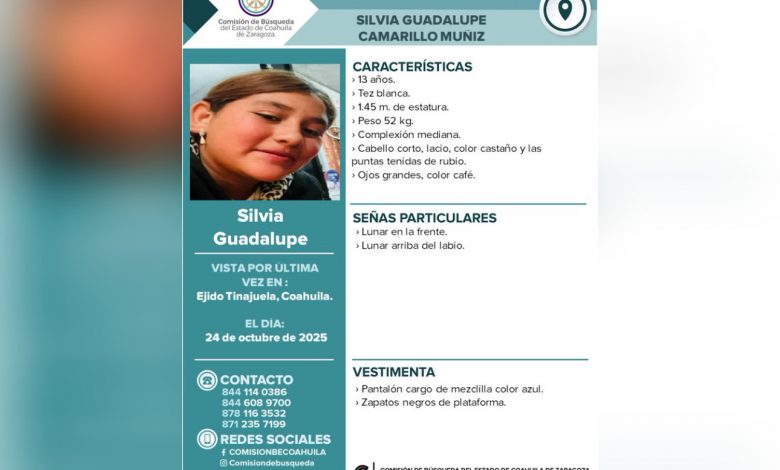 De acuerdo con las primeras indagatorias, el cuerpo corresponde a S.G.C.M., joven de 13 años que había sido reportada como no localizada desde el pasado 28 de octubre. Los primeros reportes señalan que la menor presentaba una lesión producida por arma de fuego.