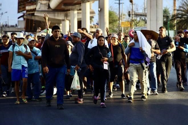 Al no conseguir permiso para viajar en autobús hacia ciudades fronterizas luego de seis días de espera, cientos de migrantes salieron caminando rumbo a Estados Unidos.