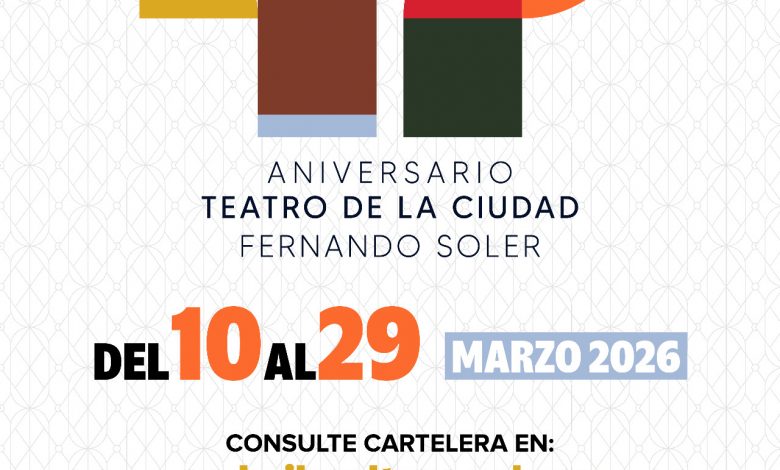 Saltillo, Coahuila.- La Secretaría de Cultura de Coahuila presenta la Cartelera Cultural de Marzo, un mes especialmente significativo que rinde homenaje a uno de los recintos más emblemáticos de Saltillo: el Teatro de la Ciudad Fernando Soler, que celebra un aniversario más como referente de las artes escénicas y como espacio fundamental para la vida cultural de las y los coahuilenses.