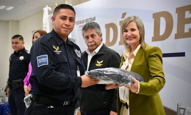 La Primera Autoridad, en el Día del Policía reconoció por su desempeño en el mes de diciembre a Sonia Nereida Caballero Tovar y a Candelario Cortez Hernández, luego en la ceremonia felicito a los policías a nombre del Cabildo de Piedras Negras, de funcionarios públicos y de la propia comunidad por el gran trabajo que diariamente llevan a cabo los policías a favor de las personas que viven y transitan en esta ciudad.