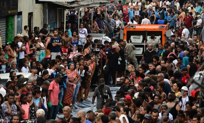 Agencias | Río de Janeiro, Br.- Entre sollozos y olor a cadáver, vecinos de una favela del norte de Rio de Janeiro colocaron más de 50 cuerpos alineados en una plaza este miércoles, un día después de una operación policial contra el narcotráfico que según un organismo público dejó al menos 132 fallecidos.