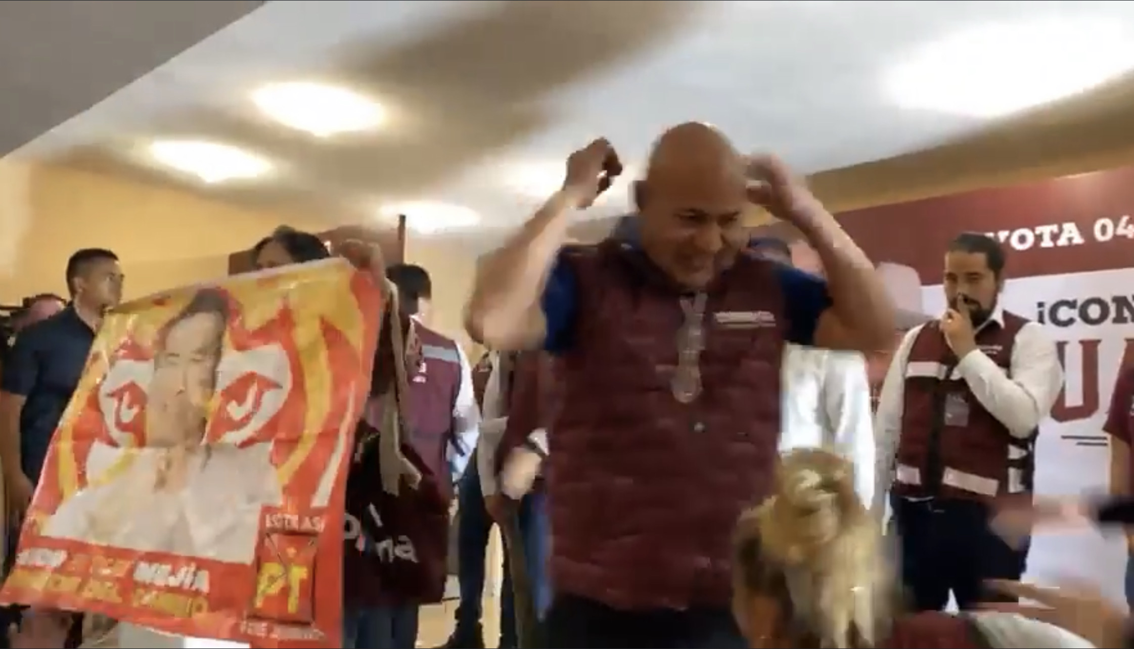 Para sorpresa de muchos, la mujer de quien hasta el momento se desconoce su identidad subió al estrado durante el mensaje de Mario Delgado y quien intentó ‘calmar las aguas’ al dejarla expresarse, sin embargo al momento de desplegar el cartelón con la imagen del ‘El Tigre Acapulqueño’ varias militantes intervinieron y comenzaron a forcejear.