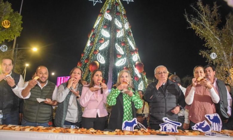 La gran rosca monumental, estuvo a cargo de la Universidad Nueva Vizcaya, quienes repartieron junto con la Alcaldesa 500 metros de trozos de rosca, café y champurrado caliente.