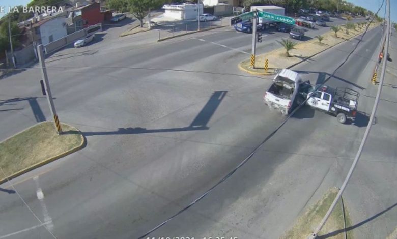 Cámaras del municipio lograron captar el momento del encontronazo, en donde se puede apreciar como una camioneta tipo pick-up Super Duty 2010 de color blanco no respetó el señalamiento de luz roja por lo que la patrulla con vía libre por la calle Juan de la Barrera impactó la unidad dejándola sobre el camellón central.