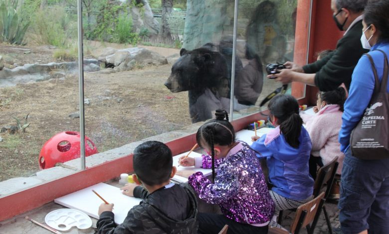 En el marco del Día del Niño, un grupo de menores de edad pudieron observar a los osos negros del MUDE: Capi y Camila. Estos osos fueron rescatados en 2011 debido a los incendios forestales que se suscitaron durante ese año en Coahuila.