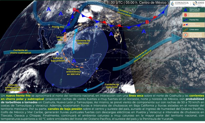 La Subsecretaría de Protección Civil del Estado (PC) informó que un nuevo frente frío, que se aproximará al norte del territorio nacional en interacción con una línea seca sobre el norte de Coahuila y las corrientes en chorro polar y subtropical, propiciará rachas de viento fuertes a muy fuertes.