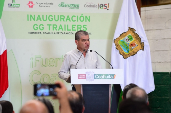 “En Coahuila tenemos las condiciones de éxito necesarias para todas las inversiones. Hemos hecho distintas estrategias, en conjunto con las empresas locales para ofrecer lo mejor a quienes, desde fuera, nos visitan, exploran y se quedan en Coahuila”, manifestó el gobernador Miguel Ángel Riquelme Solís durante la inauguración de la empresa GG Trailers, la cual invierte 16 millones de dólares y generará 450 empleos directos y más de mil indirectos.