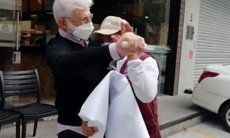 Un video captó el momento en el que Daniel Tabe, padre de Mauricio, amaga con el cuchillo al funcionario luego de tomarlo por el cuello. Tras unos segundos lo suelta y camina hacia la persona que realiza la grabación.