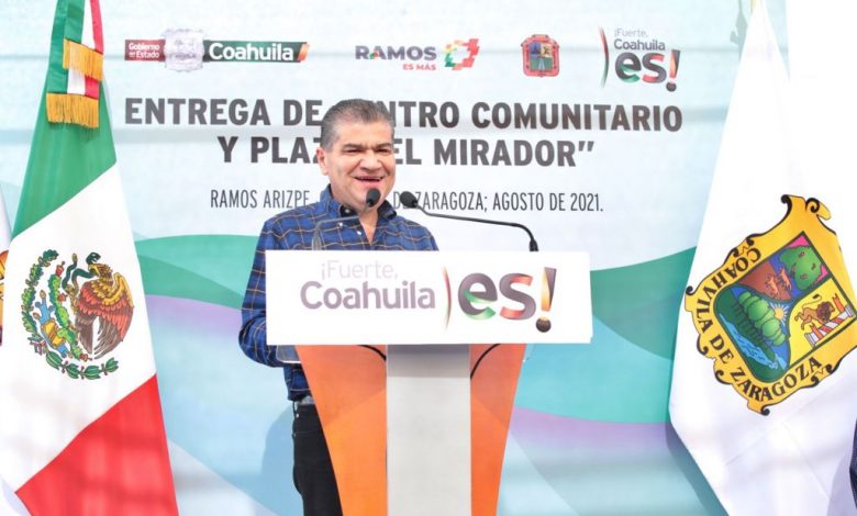 Entrega gobernador Miguel Riquelme remodelación de plaza pública y centro comunitario en Colonia El Mirador, en Ramos Arizpe.