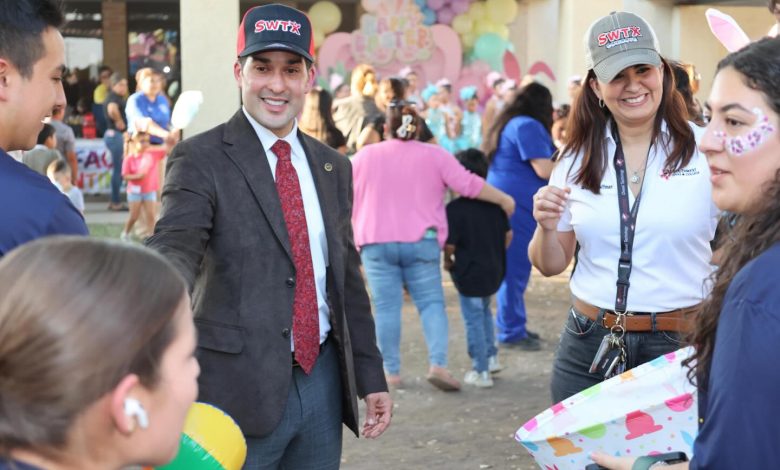 Redacción | Eagle Pass, Tx.- El mayor de Eagle Pass, Aarón Valdez, participó en el evento Easter Egg Hunt & Community College Fair realizado en las instalaciones de Southwest Texas College, donde familias de la comunidad se reunieron en una jornada enfocada en la convivencia y el acceso a oportunidades educativas.