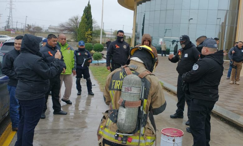 Personal de Protección Civil del Estado de Coahuila encabezó un simulacro de incendio en las instalaciones de la Fiscalía General del Estado y del Poder Judicial del Estado ubicado sobre el Boulevard República.