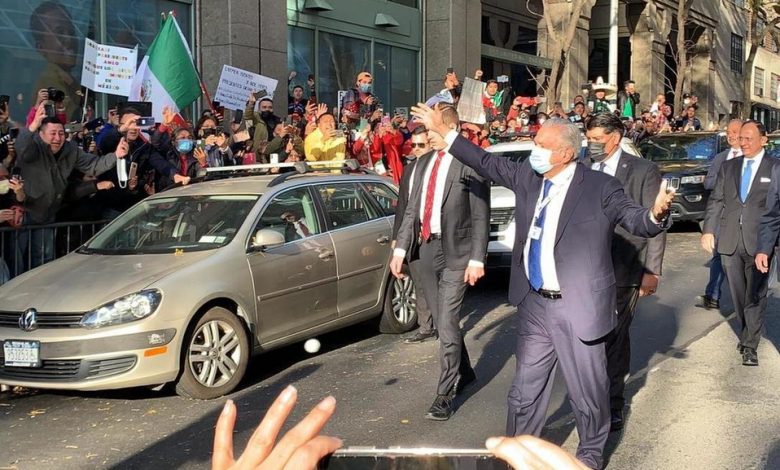 Cruzan gritos en NY seguidores y detractores de AMLO