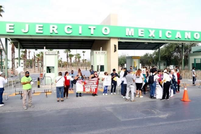 Un grupo de 30 personas, familiares de desaparecidos en Nuevo León, se apostó esta mañana frente al Campo Militar para exigir justicia al Presidente Andrés Manuel López Obrador.