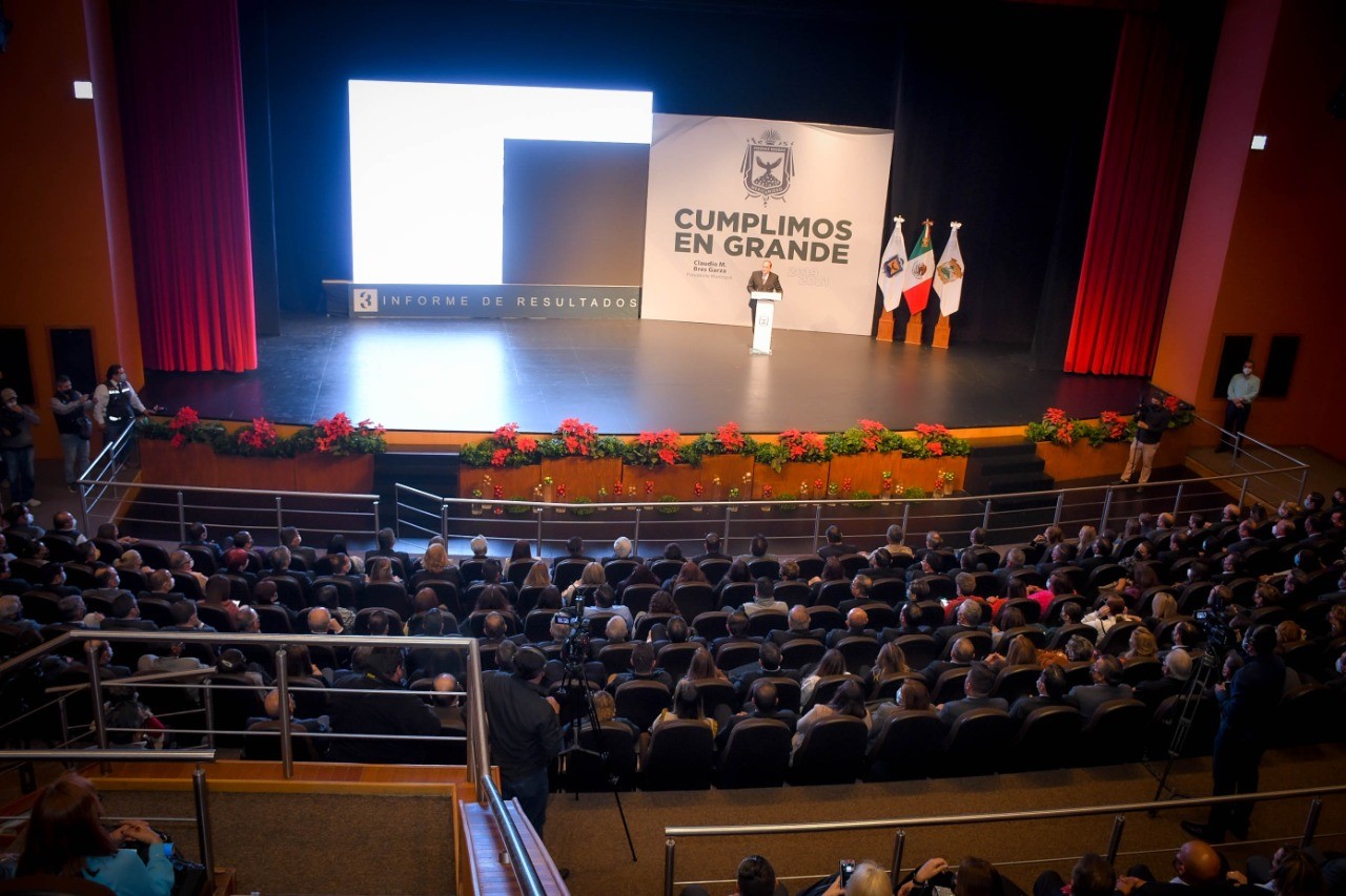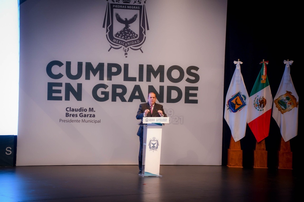 La noche de este jueves 16 de diciembre, en el Teatro de la Ciudad, el presidente municipal, Claudio M. Bres Garza rindió el informe de resultados de la administración 2019-2021, ante los ciudadanos de Piedras Negras, autoridades del gobierno estatal y federal, alcaldes y alcaldesas de Coahuila, exalcaldes de Piedras Negras y autoridades del lado americano.