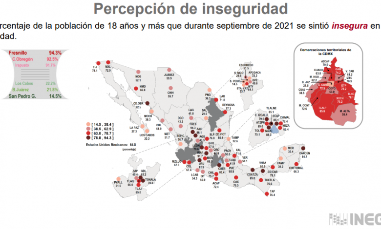 “El Instituto Nacional de Estadística Geografía e Informática (INEGI) cada tres meses, cuatro veces al año, realiza esta Encuesta de Seguridad Pública y en el tercer trimestre de este 2021, municipios como San Pedro Garza García aumentan unos puntos en materia de inseguridad y a nosotros, Piedra Negras, nos mantiene como la frontera más segura”, detalló Bres Garza.