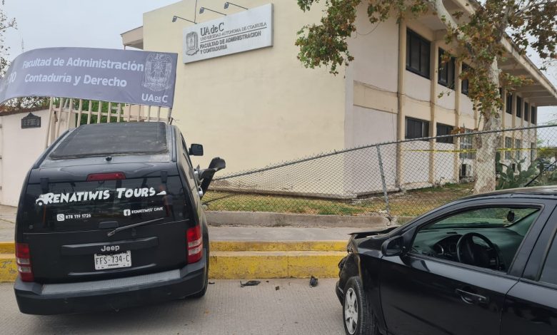La conductora responsable, identificada como Valeria “N”, de 16 años y estudiante de la Preparatoria Luis Donaldo Colosio, no logró frenar a tiempo, lo que provocó que su unidad golpeara por alcance al Aveo y posteriormente se proyectara hacia el área de la Facultad de Contabilidad, causando daños materiales adicionales.