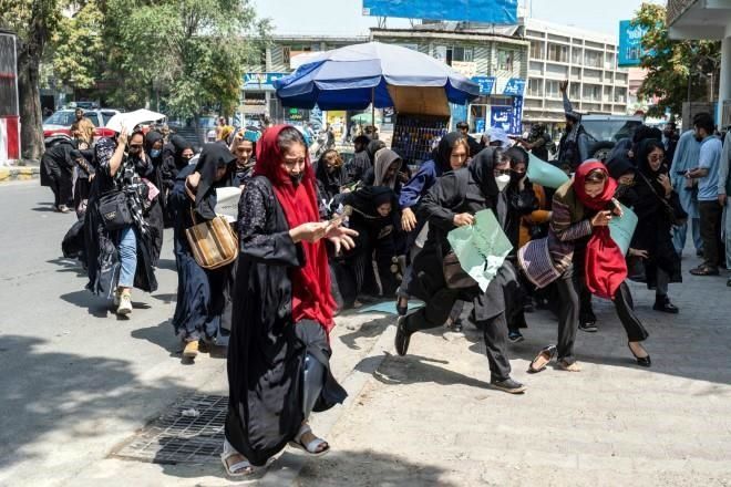 Unas 40 mujeres que coreaban «¡Pan, trabajo y libertad!» desfilaron delante del Ministerio de Educación, pero unos cinco minutos después de iniciada la marcha un grupo de combatientes talibanes las dispersó disparando al aire en ráfagas.