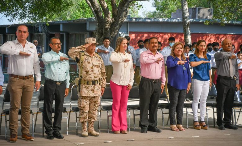 Preside Alcaldesa saludo a la Bandera en la Sec. Abel Herrera