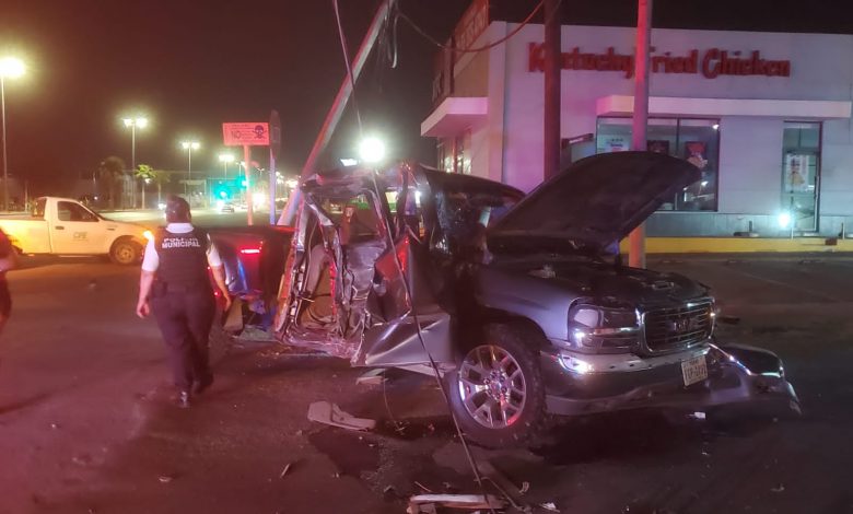 Un conductor presuntamente ebrio perdió el control de su camioneta y derribó tres postes, provocando caos sobre el Libramiento Manuel Pérez Treviño, al suroeste de la ciudad.
