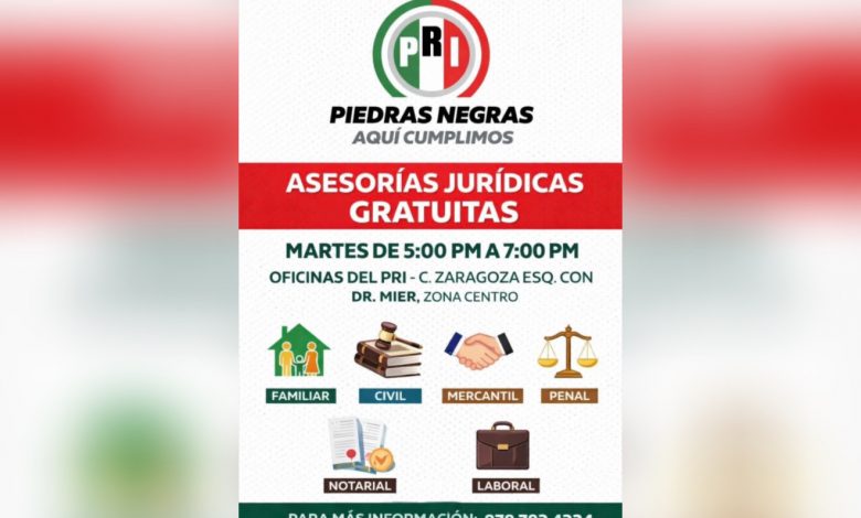PRI Piedras Negras ofrecerá asesorías jurídicas gratuitas
