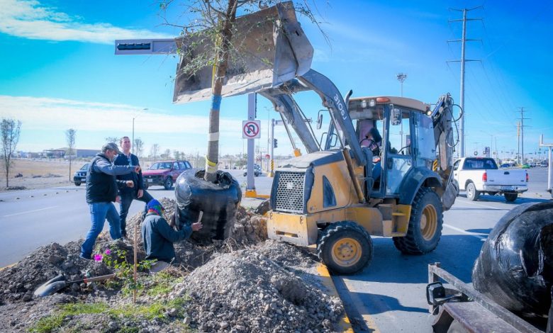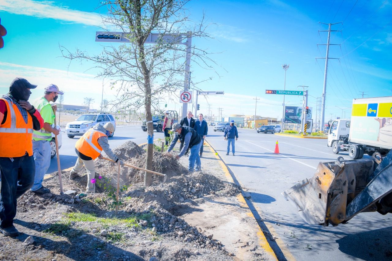 Detalló que, este día arrancaron en el bulevar central de Pérez Treviño cruce con República y hasta lo que es el cruce con Román Cepeda, donde se encuentra el Puente Rojo, con un nuevo plantío de árboles, encinos siempre verdes.