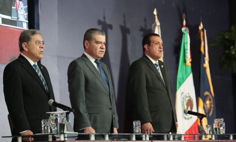 Miguel Riquelme destacó que la Autónoma de Coahuila ha sido componente central del círculo virtuoso que se sostiene entre los pilares del desarrollo y crecimiento: Seguridad pública, educación de calidad, inversiones productivas, empleos formales, bienestar y seguridad social para las familias.