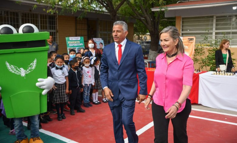 Autoridades municipales realizaron una ceremonia cívica de honores a la Bandera Nacional en la Escuela Primaria Emiliano Zapata, ubicada en el sector Francisco Villa de esta frontera, acto en el cual se brindó a los estudiantes la brigada «Todos a la Escuela» y el Programa Educativo «Éntrale a la Educación Peso a Peso».