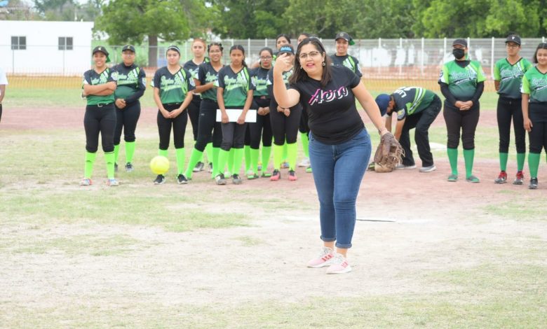 Luego de tomar protesta por parte del ciudadano Pedro Mendoza Fernández, presidente de la liga de sóftbol región norte, la alcaldesa realizó el primer lanzamiento de bola, “envío un saludo para mi amiga la licenciada Alina Garza Herrera, directora del Inedec, gracias por impulsar el deporte, por el apoyo en especial que brinda siempre en nuestro municipio.