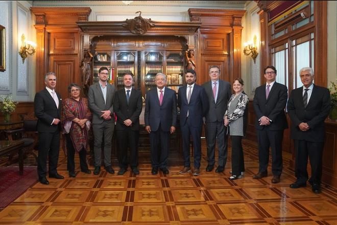 En la reunión estuvieron presentes los secretarios de Hacienda, Rogelio Ramírez de la O; de Relaciones Exteriores, Marcelo Ebrard, y de Economía, Raquel Buenrostro, así como el titular de la Comisión Nacional del Agua, Germán Martínez Santoyo.