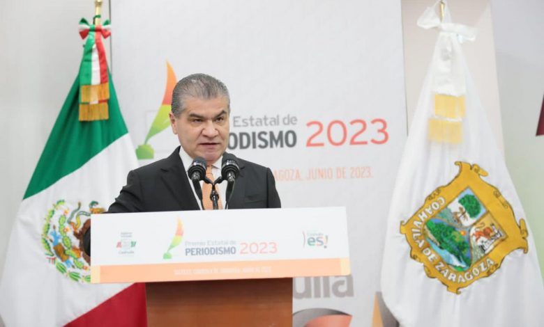 El gobernador Miguel Ángel Riquelme Solís entregó el Premio Estatal de Periodismo 2023 a profesionales de la comunicación, a quienes agradeció y reconoció por el alto compromiso social y acompañamiento solidario recibido durante toda su Administración.