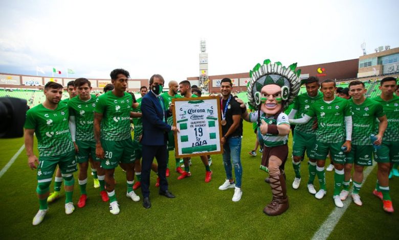 El entrenador uruguayo Guillermo Almada entregó al jugador lagunero un cuadro enmarcado con una playera con el número 19 y con la leyenda “Guerrero de Bronce”, haciendo homenaje y reconocimiento por dicha presea obtenida en Tokio 2020, y por representar dignamente a Santos Laguna, a su natal San Pedro de las Colonias y a todo el Estado de Coahuila.