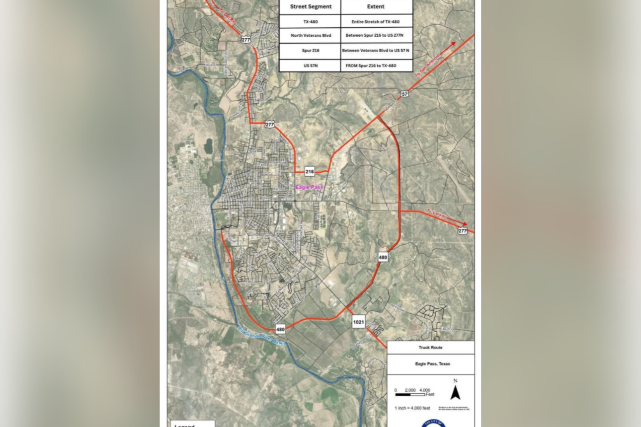 Redacción | Eagle Pass, Tx.– En un esfuerzo por seguir ordenando el crecimiento de la ciudad y reducir riesgos en las zonas habitacionales, el mayor Aaron Valdez destacó la instalación de nueva y más visible señalización para la Truck Route, un proyecto que forma parte de la estrategia semanal de mejoras en infraestructura y movilidad.