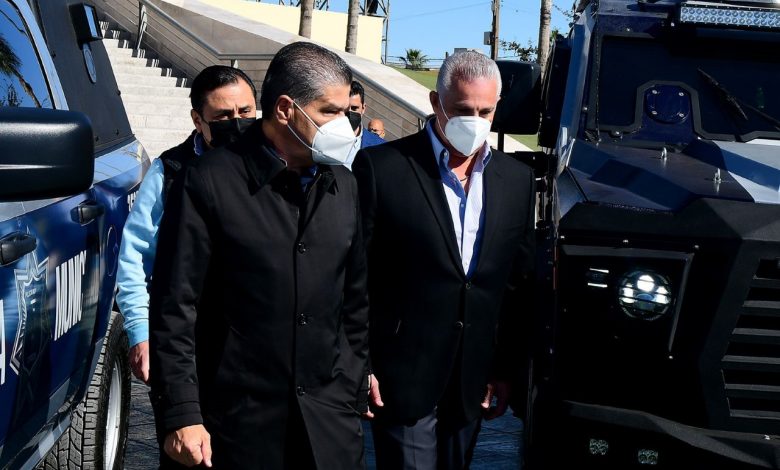 El gobernador Miguel Riquelme, junto con el alcalde Román Alberto Cepeda González, entrega patrullas y equipo táctico con inversión de 55 mdp.