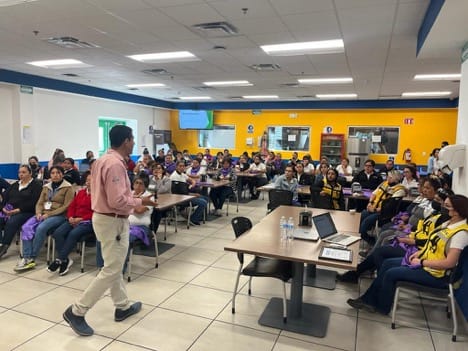 Leticia Charles Uribe, Directora General del CJEM, señaló que esta es una empresa de giro automotriz, donde se impartieron pláticas por medio del Departamento de Psicología con el propósito de evitar la violencia contra mujeres, niñas y niños.
