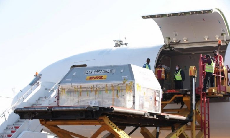 El cargamento, procedente de Bélgica, llegó alrededor de las 08:15 horas a la Terminal 1 del AICM y fue recibido por Pedro Zenteno Santaella, director general de Biológicos y Reactivos de México (Birmex).