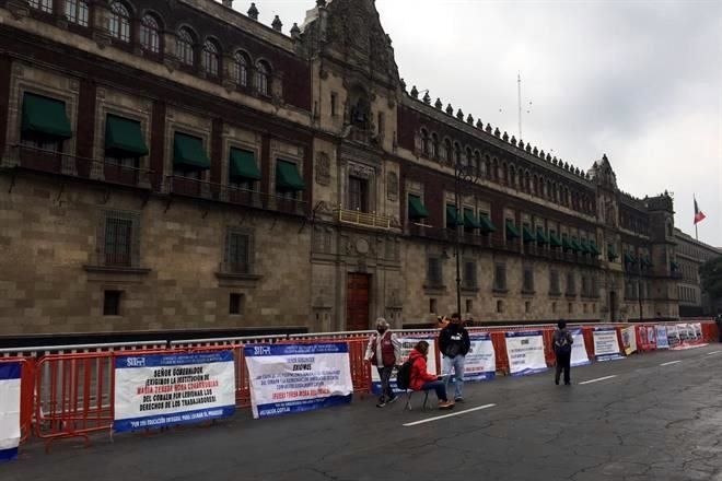 Los profesores han colgado mantas y carteles en las vallas que impiden el paso hacia Palacio Nacional y demandan además la destitución de la directora del Cobaem, María Teresa Covarrubias, y la reinstalación de cuatro trabajadores.