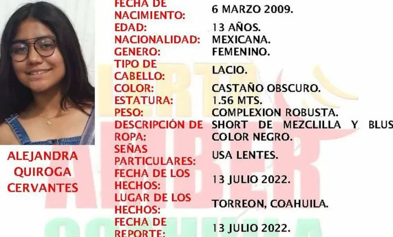 En Coahuila, se activó la Alerta Amber por la desaparición de una menor de 13 años en el municipio de Torreón.