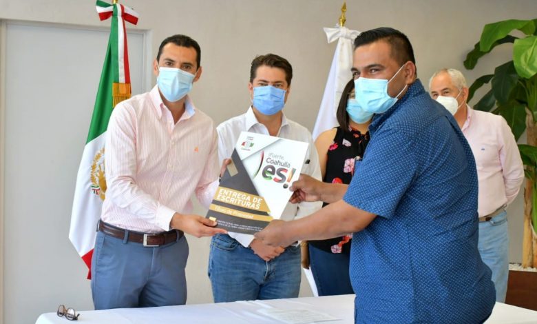 Con la presencia de Enrique Martínez y Morales, Secretario de Vivienda y Ordenamiento Territorial en el Estado, el alcalde de Nava Sergio Zenón Velázquez Vázquez, encabezó la entrega de escrituras a dos ciudadanos navenses quienes aprovecharon el programa que promueve el Gobierno del Estado “Cambio de propietario”, ofreciendo así certeza jurídica a sus patrimonios.
