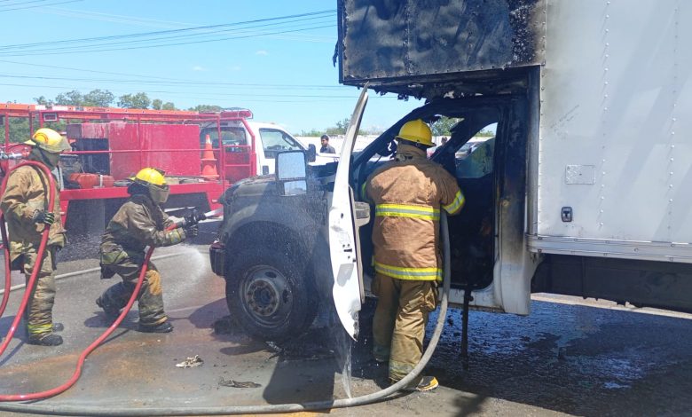 Un camión de mudanzas de cinco toneladas que trasladaba una Ford Bronco modelo reciente se incendió la tarde de este jueves a la entrada de Piedras Negras, provocando la movilización inmediata de cuerpos de emergencia.