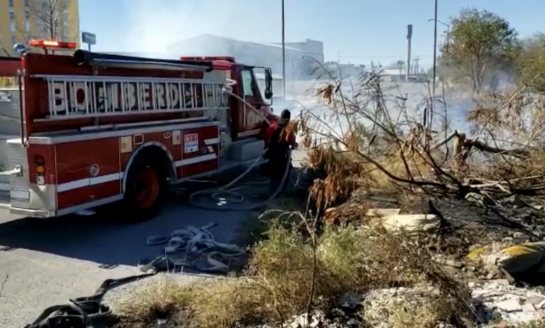 Elementos del Cuerpo de Bomberos de Piedras Negras atendieron de manera oportuna un incendio en un terreno baldío ubicado sobre la calle Higueras en la colonia Las Palmas.