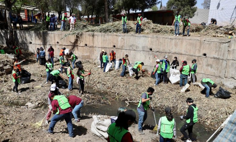Colaboran en limpieza del arroyo Los Ojitos, que pasa por la institución
