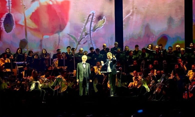 La Compañía de Ópera y la Orquesta Filarmónica abrieron ambos conciertos interpretando “La Marcha de los Toreros”, de la ópera Carmen, para luego interactuar con Andrea y artistas invitados en piezas como “Di quella pira” y “Nessun dorma”, duetos como el “Brindis”, de Traviata, y canciones como “O sole mio” y “Amapola”.