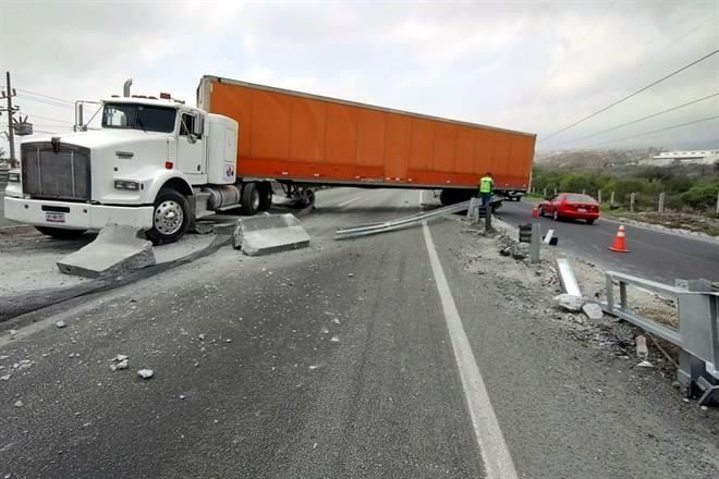 La unidad de carga dañó y movió los muros de contención centrales y quedó obstruyendo los carriles contrarios.