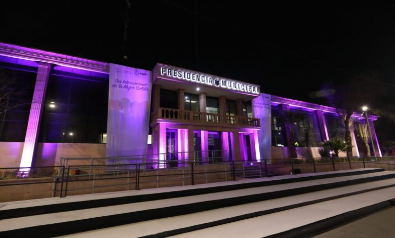 Como parte de las actividades en conmemoración por el Día Internacional de la Mujer, el edificio de la Presidencia Municipal de Saltillo se vistió de color morado, fecha que rememora la lucha de las mujeres por una mayor participación dentro de la sociedad y su desarrollo íntegro como persona.