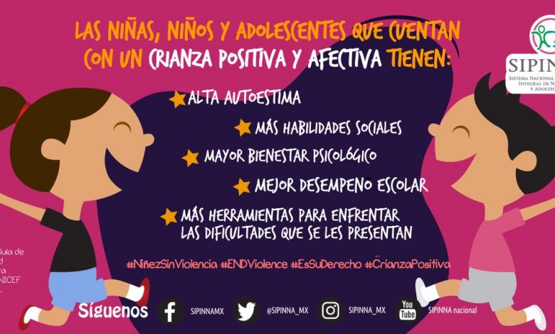 En cambio, explicó, la crianza positiva y el buen trato generan apego seguro, empatía, habilidades, conocimientos y comportamientos sociales altruistas en niñas, niños y adolescentes; además les permiten manejar mejor los deseos y las frustraciones, desempeñarse socialmente y desarrollar una identidad individual y social.