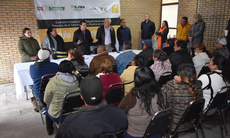 23 escrituras de la Colonia Nuevo Saltillo se firmaron en las oficinas de la Comisión Estatal para la Regularización de la Tenencia de la Tierra Urbana y Rústica de Coahuila, con la presencia del Secretario, Enrique Martínez y Morales, acompañado del Director de CERTTURC, Miguel Ángel Leal, y del propietario del terreno, Juan Gerardo Tovar Gutiérrez, dando certeza jurídica a las familias beneficiadas de Saltillo.