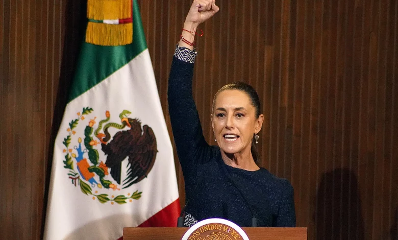 Sin hacer una mención expresa a EE.UU, Sheinbaum se refirió así a las presiones y amenazas del presidente Trump de imponer aranceles a las importaciones desde México, declarar como terroristas a los cárteles mexicanos y continuar las deportaciones masivas de migrantes.
